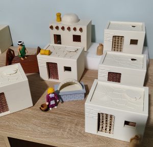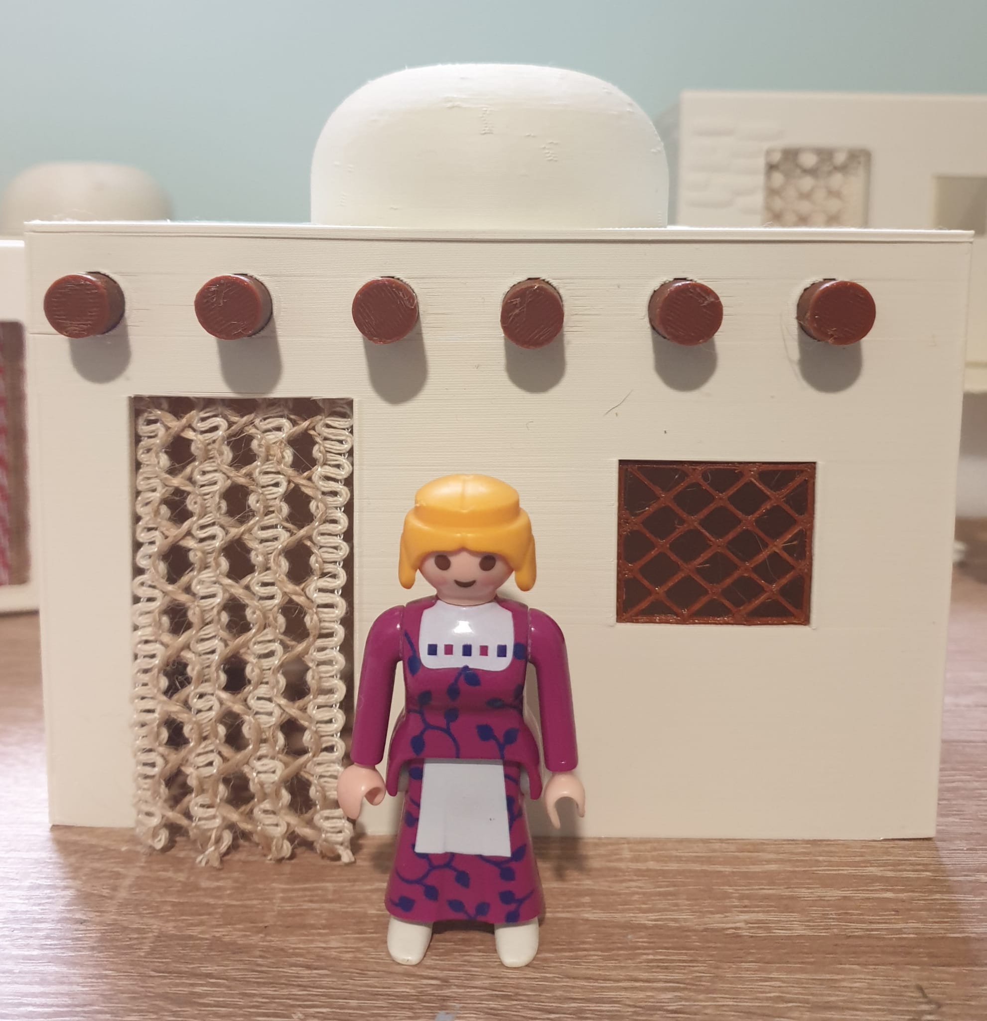 Una casa de estilo tradicional diseñada a escala Playmobil, perfecta para complementar tu belén navideño. Casa hecha en 3D en color marfil con bigas de madera y puerta hecha en PLA alta calidad ideal para dioramas. No incluye figura ni objetos externos a la casa. Se hacen lotes con descuento.