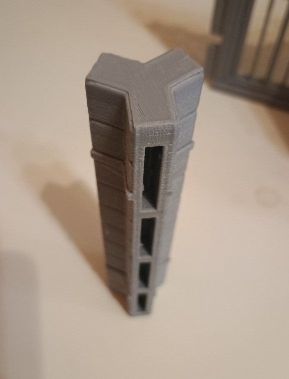 Conector steck 120º y 135º en 3D de color gris con PLA alta calidad ideal para dioramas a escala playmobil. No incluye figura ni objetos externos a la casa. Se hacen lotes con descuento.