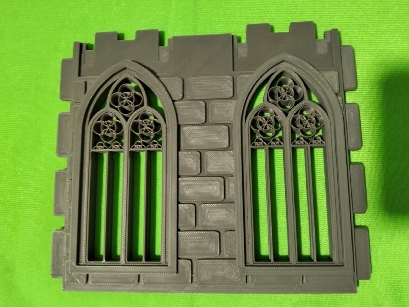 Muro doble con 2 ventanales góticas individuales en 3D de color gris con PLA alta calidad ideal para dioramas a escala playmobil. No incluye figura ni objetos externos a la casa. Se hacen lotes con descuento. Encaja en casa steck perfectamente